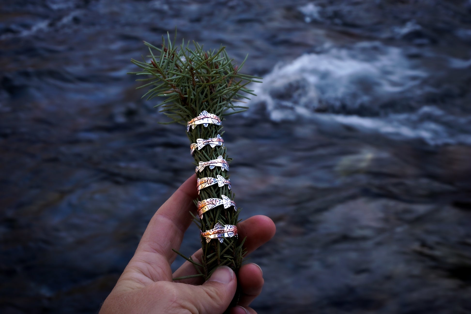After placing your order please email trailspicedesigns@gmail.com or message me over instagram @trailspicedesigns with your ring size, what 2 fish you'd like on your ring, any additional details or modifications, and any other notes! If it's a fish I haven't made a design for yet, I'll draw one up and run it by you before creating the ring.