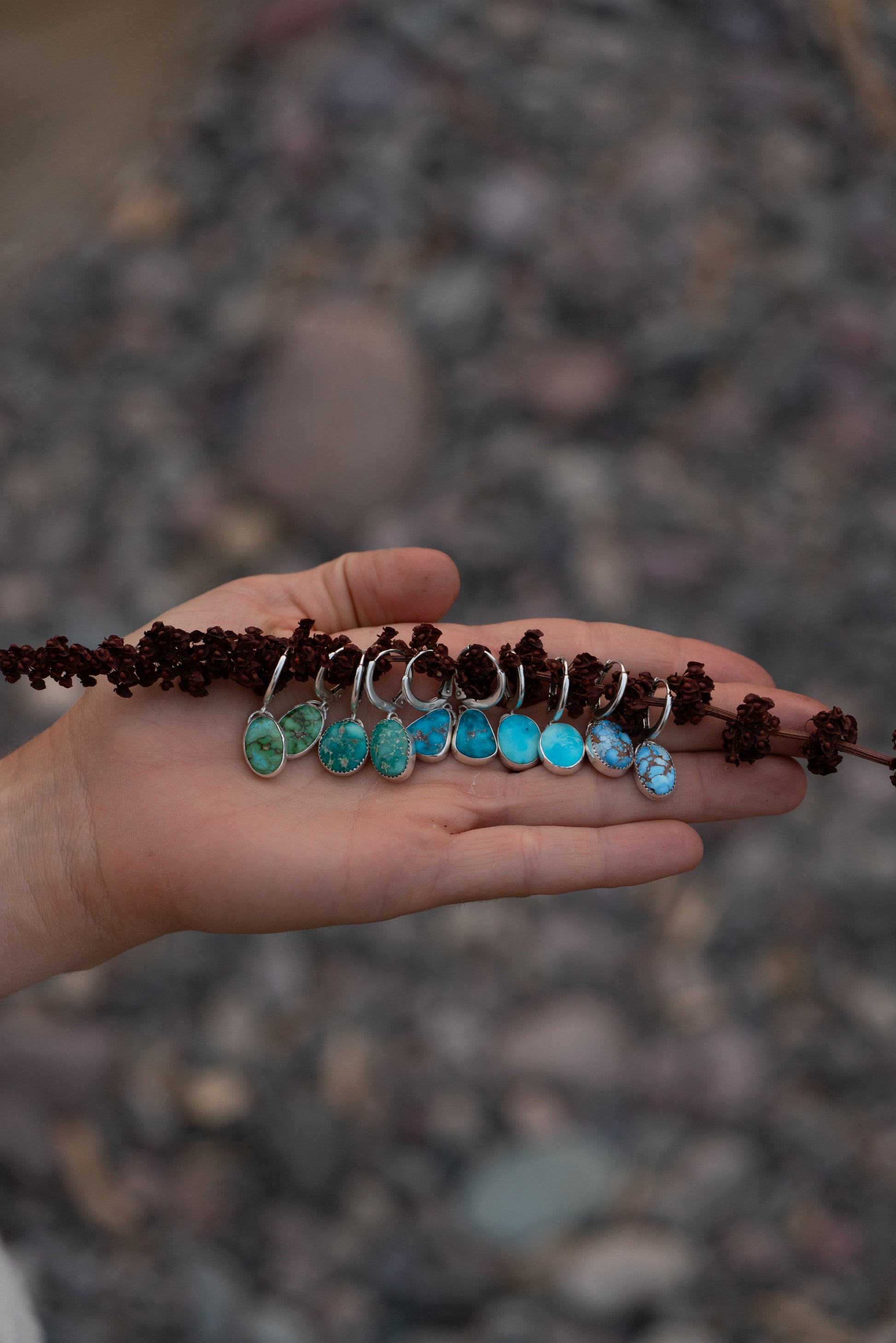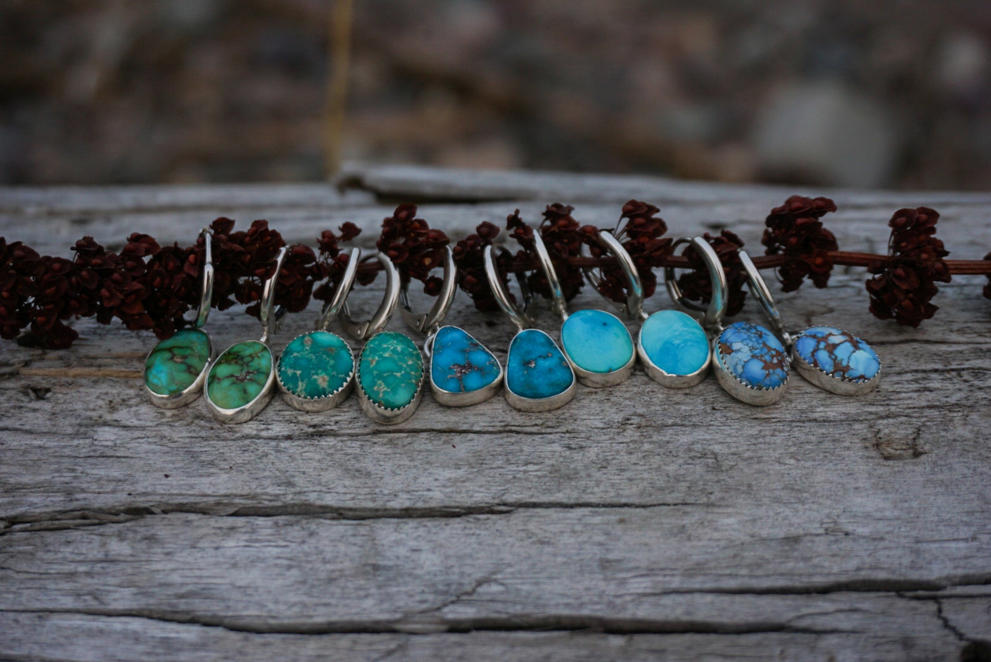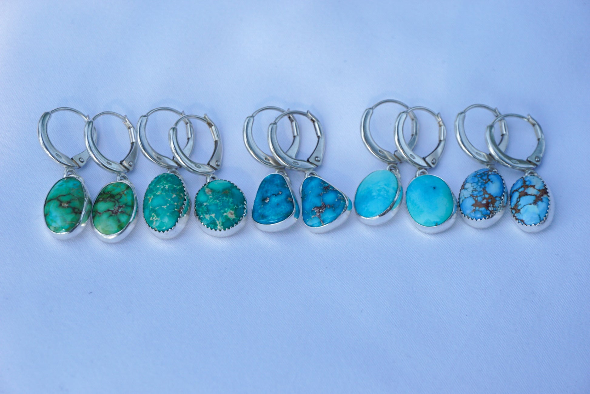 These earrings are handmade from sterling silver with a variety of beautiful & unique turquoise stones