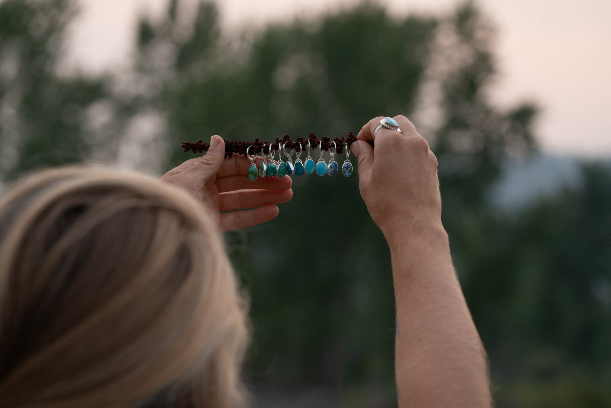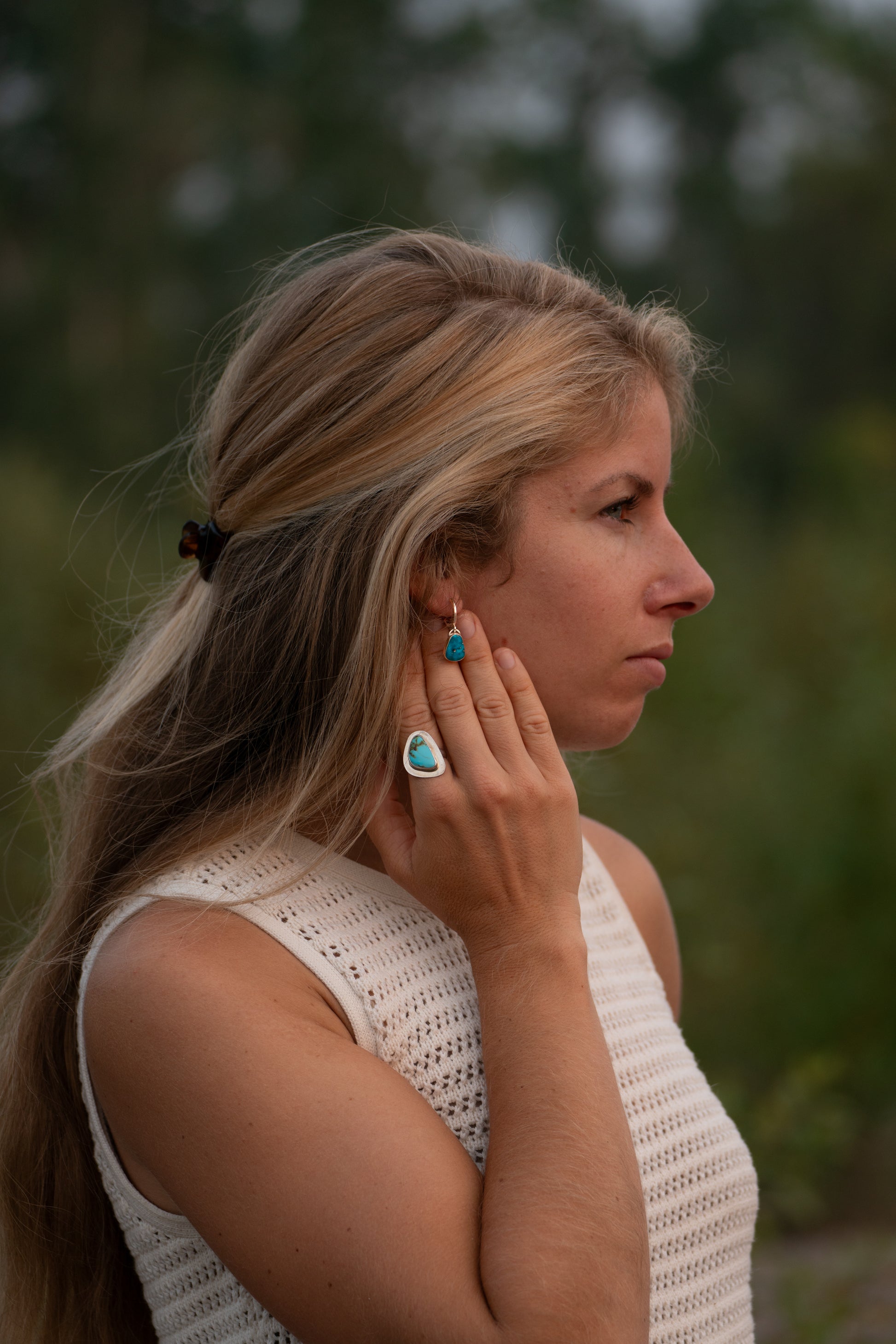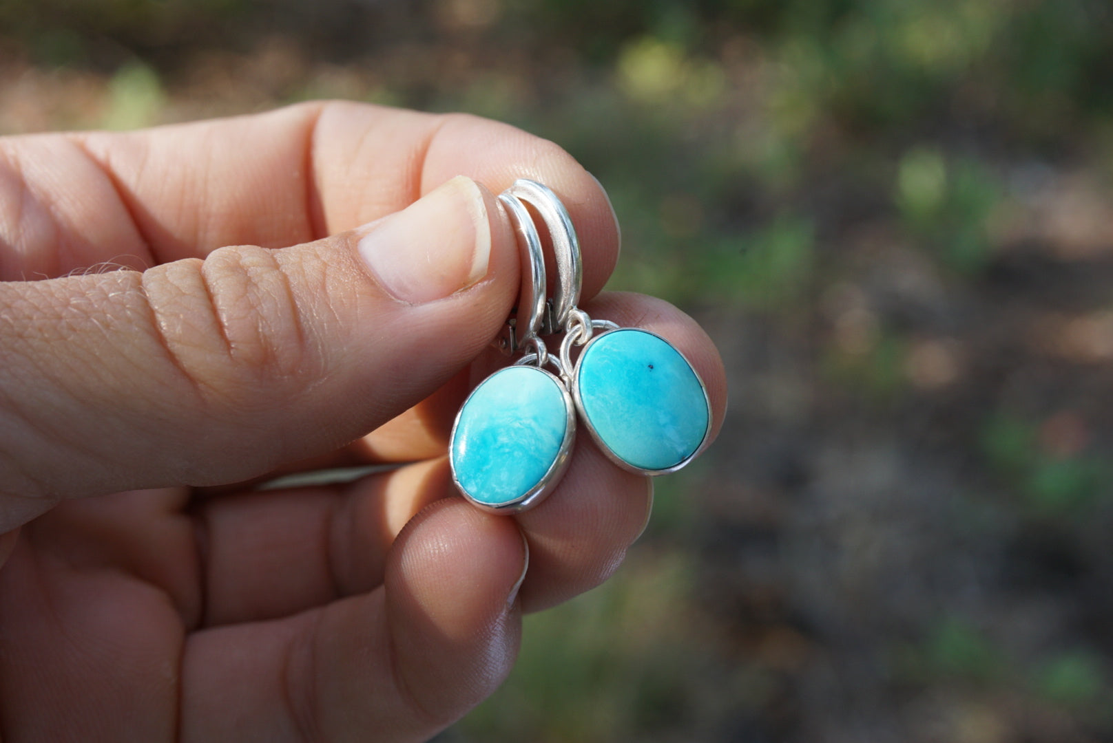 These earrings are handmade from sterling silver with a variety of beautiful & unique turquoise stones