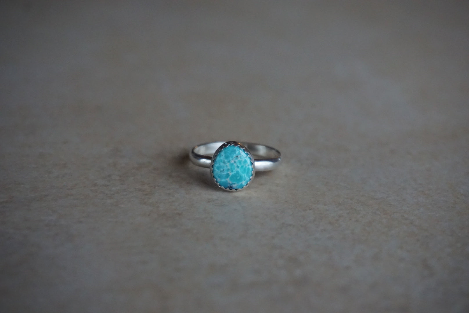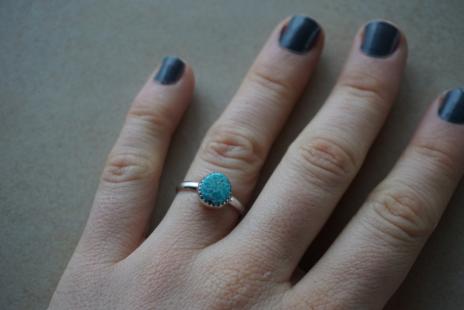 Small and simple ring with a pop of blue. Dress it up with some stackers!